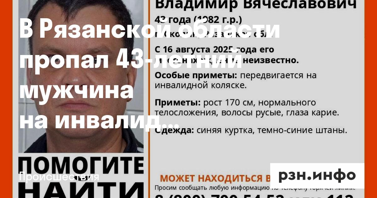 В Скопине пропал 43-летний Владимир Кондаков на инвалидной коляске. Об этом сообщил ПСО «ЛизаАлерт».