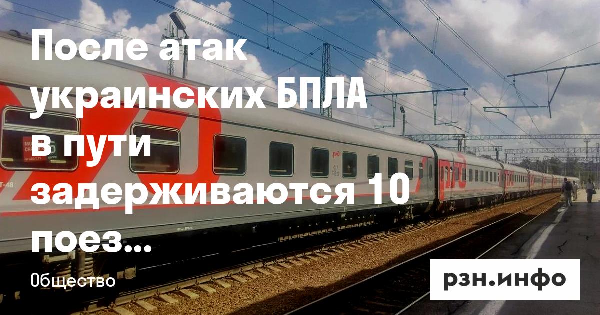 После атак украинских БПЛА в пути задерживаются 10 поездов, следующих через Рязань. Об этом сообщает оператор железнодорожных пассажирских перевозок «Гранд сервис экспресс».