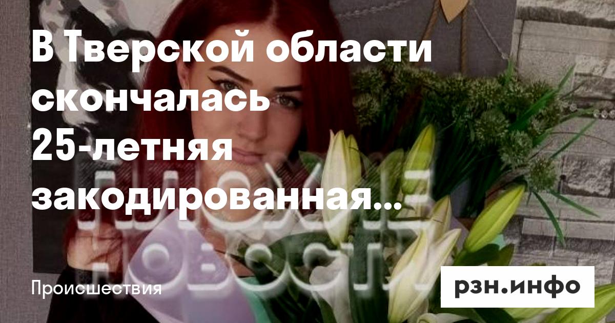 В Тверской области скончалась 25-летняя закодированная девушка. Об этом сообщили в телеграм-канале «Плохие новости».