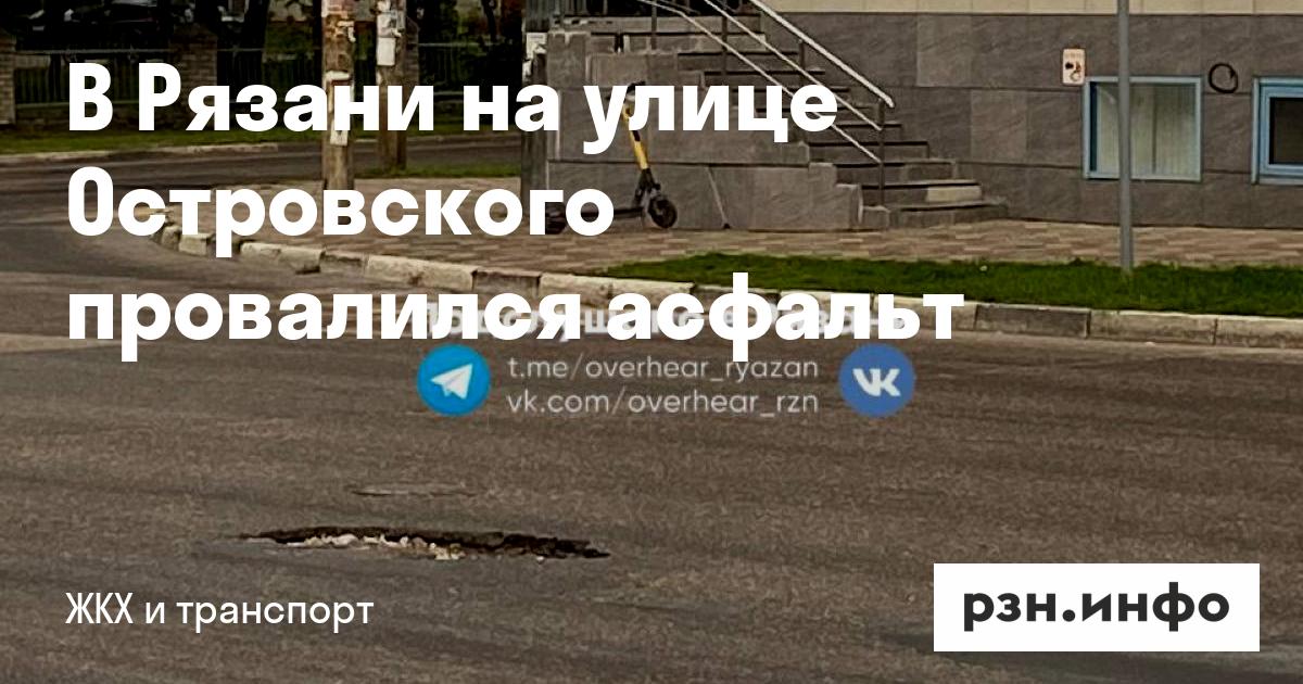 В Рязани на улице Островского провалился асфальт. Об этом в пятницу, 29 августа, сообщает Telegram-канал «Подслушано в Рязани».