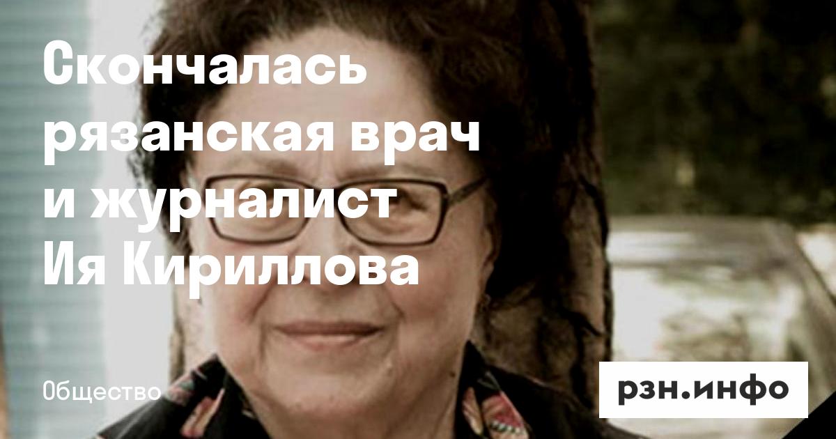 Скончалась рязанская врач и журналист Ия Кириллова. Об этом 3 августа сообщили ее коллеги из «Рязанской областной газеты».