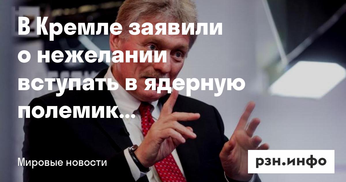 В Кремле выразили нежелание вступать в полемику с США по поводу ядерных угроз. Об этом сообщает «Ъ» со ссылкой на пресс-секретаря президента России Дмитрия Пескова.