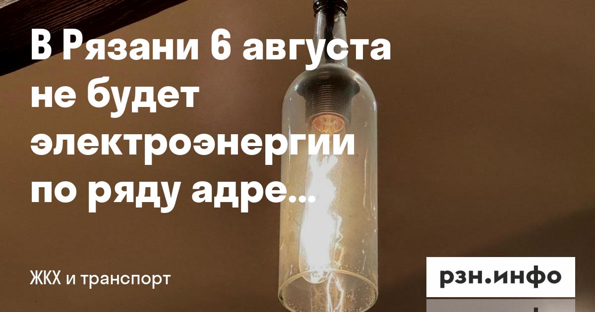 В Рязани 6 августа не будет электроэнергии по ряду адресов