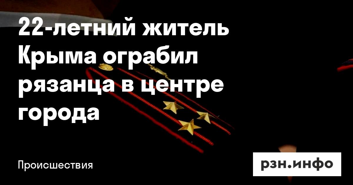 По данным полиции, еще находясь в Крыму, молодой человек ограбил там местного жителя и решил скрыться на поезде, чтобы его не нашли. Крымчанин решил выйти в Рязани и, чтобы заработать денег, ограбил 24-летнего местного жителя в центре города. Он сорвал с рязанца золотую цепочку и скрылся.