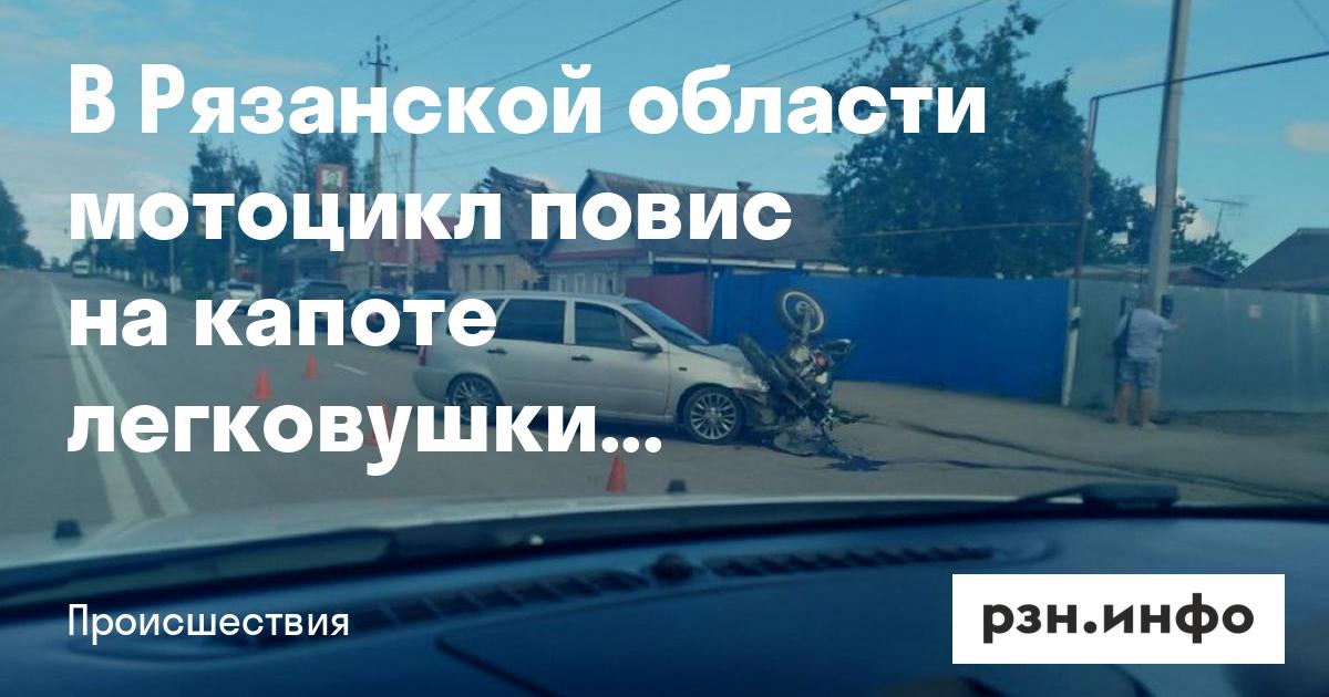 В Рязанской области мотоцикл повис на капоте легковушки после ДТП. Об этом сообщили в соцсетях.
