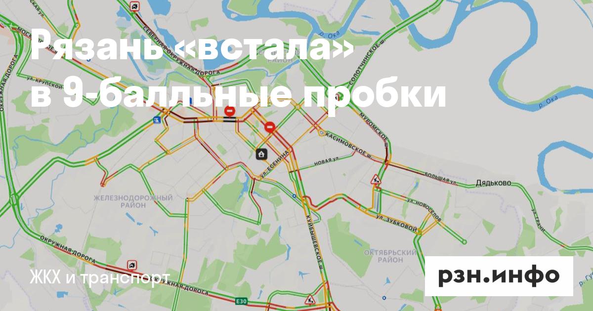 Рязань «встала» в 9-балльные пробки. Об этом сообщает сервис «Яндекс карты».