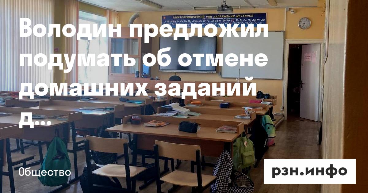 Председатель Госдумы Вячеслав Володин предложил подумать об отмене домашних заданий для школьников. Об этом он 9 августа написал в своем Telegram-канале.