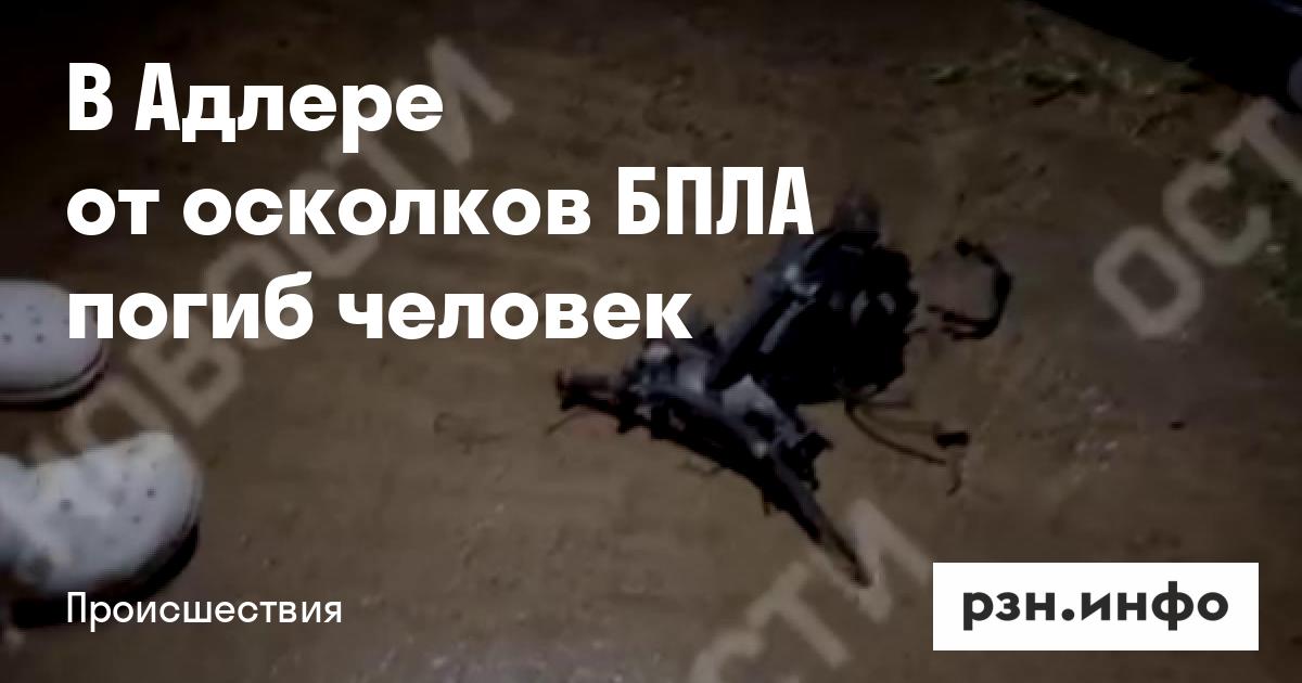 В Адлере от осколков БПЛА погиб человек. Об этом сообщили в Telegram-канале «Осторожно, новости».