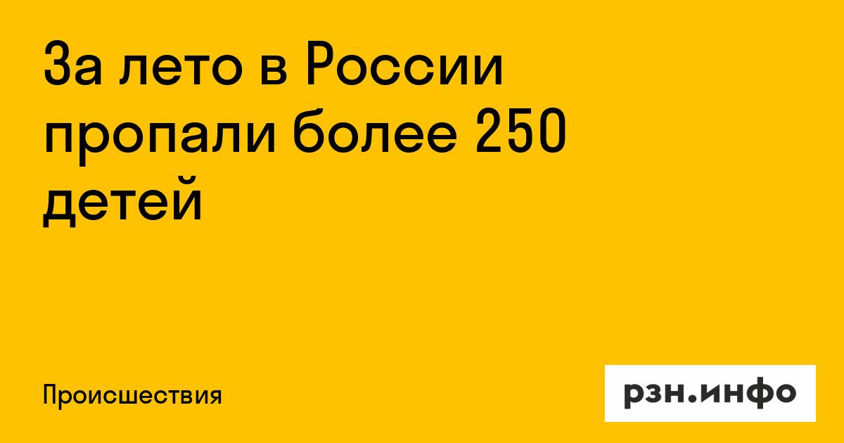 За лето 2025 года в России пропали 253 ребенка. Об этом 10 сентября сообщила «Газета.Ru» со ссылкой на данные проекта «Помощь в поиске детей», запущенного командой приложения «Где мои дети».