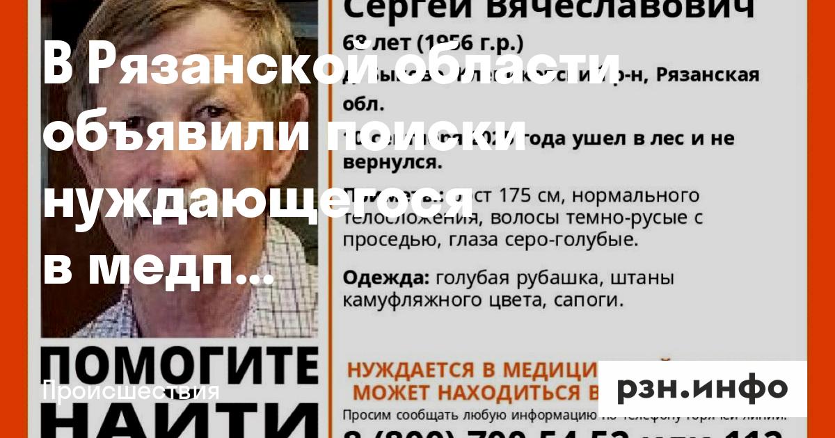 В Рязанской области объявили поиски нуждающегося в медпомощи мужчины
