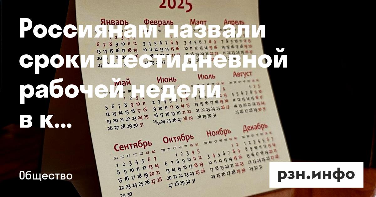 Россиянам назвали сроки шестидневной рабочей недели в конце октября