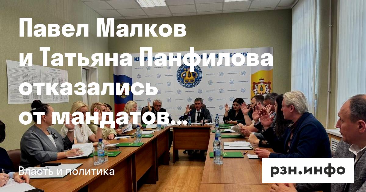 Губернатор региона Павел Малков и председатель гордумы Татьяна Панфилова отказались от получения мандатов депутатов рязоблдумы. Об этом сообщили в региональном избиркоме.