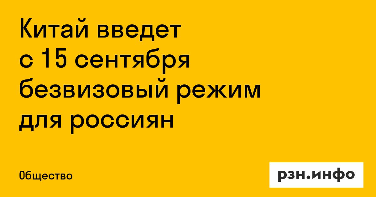 Китай введет с 15 сентября безвизовый режим для россиян