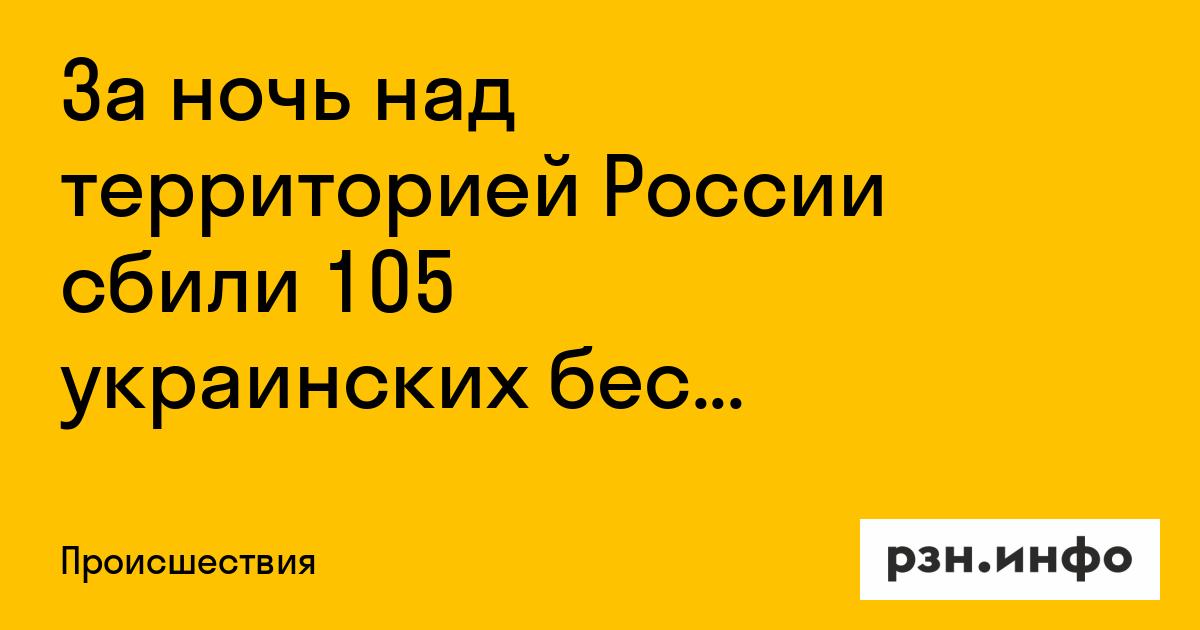 Ночью над территорией России дежурными средствами ПВО уничтожили 105 украинских беспилотника. Об этом сообщила пресс-служба Минобороны РФ.