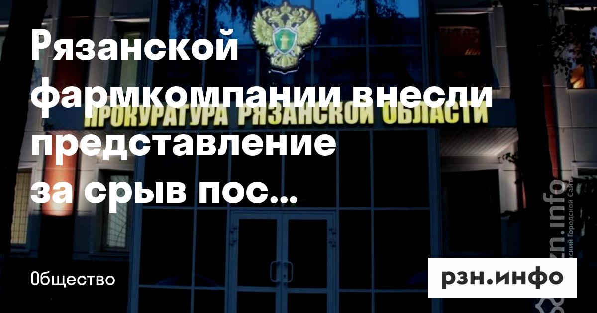 Рязанской фармкомпании внесли представление за срыв поставок медизделий в аптеку