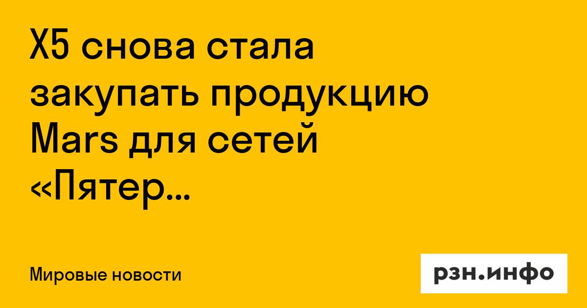 Х5 снова стала закупать продукцию Mars для сетей «Пятерочка» и «Перекресток». Об этом пишет агентство «Прайм».