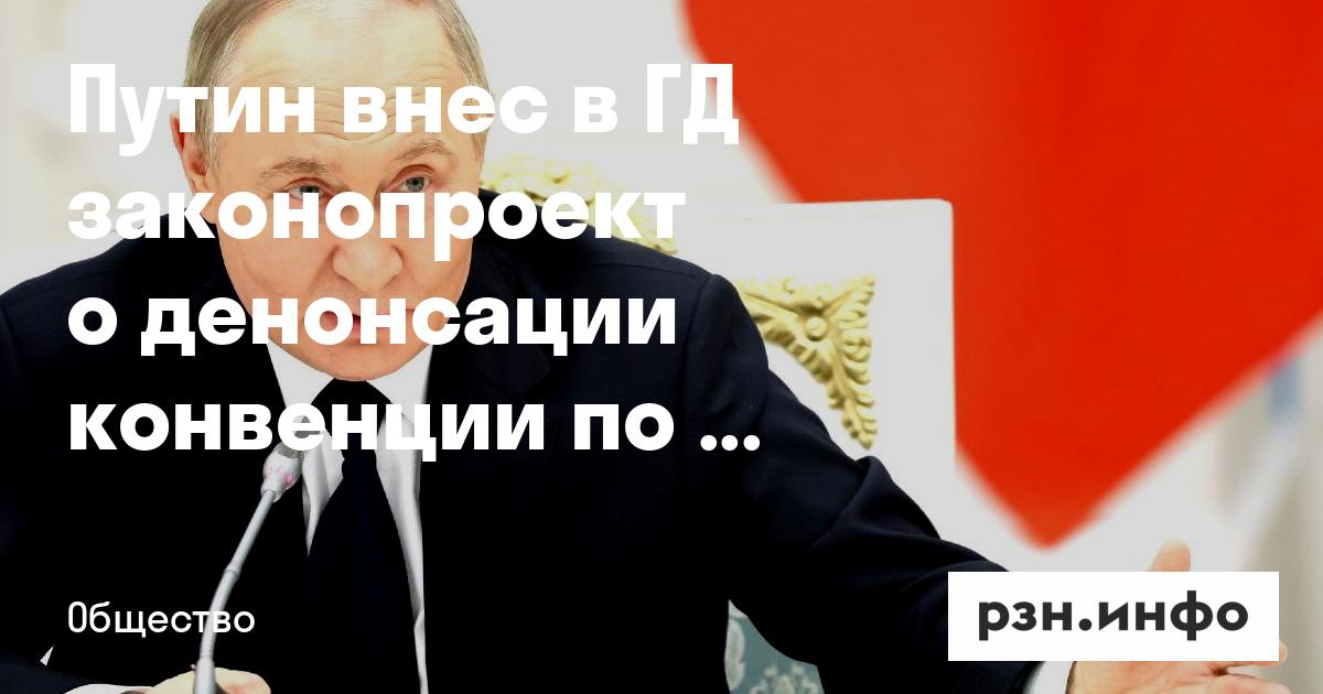Президент РФ Владимир Путин внес в Государственную Думу законопроект о денонсации Европейской конвенции по предупреждению пыток и бесчеловечного или унижающего достоинство обращения или наказания, подписанной в 1987 году. Текст законопроекта уже опубликован в электронной базе Госдумы, пишет ТАСС.