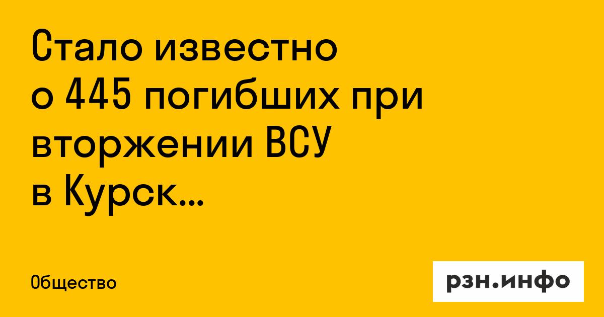 Стало известно о 445 погибших при вторжении ВСУ в Курскую область