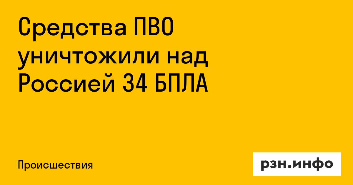 Средства ПВО уничтожили над Россией 34 БПЛА