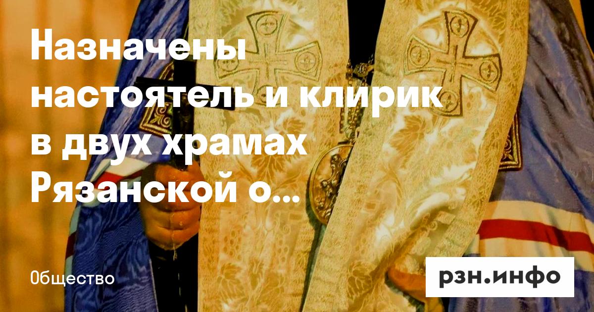 Назначены настоятель и клирик в двух храмах Рязанской области. Соответствующие указы опубликованы на сайте Рязанской Епархии.