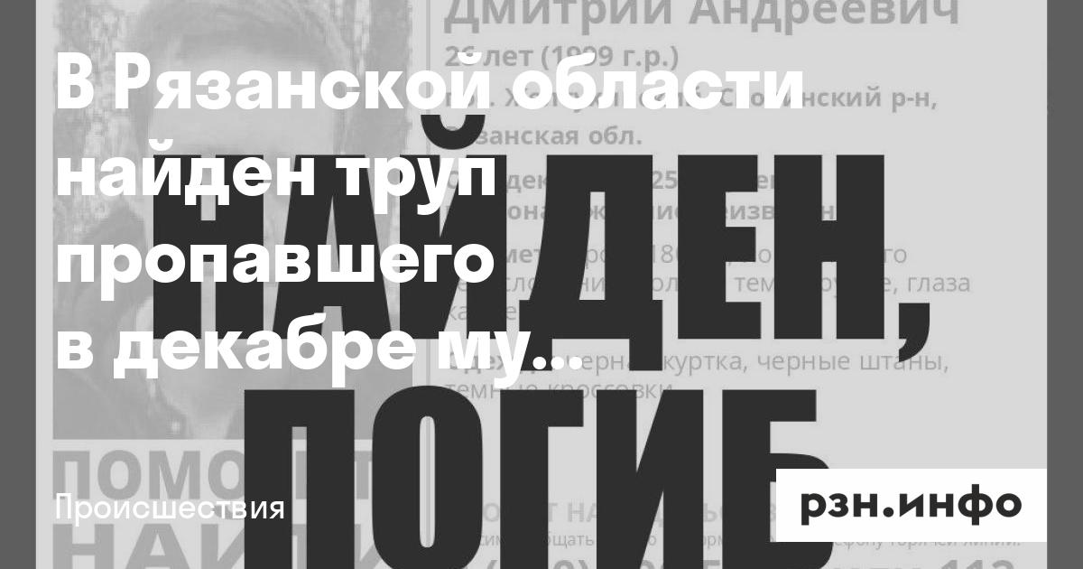 В Рязанской области найден труп пропавшего в декабре мужчины