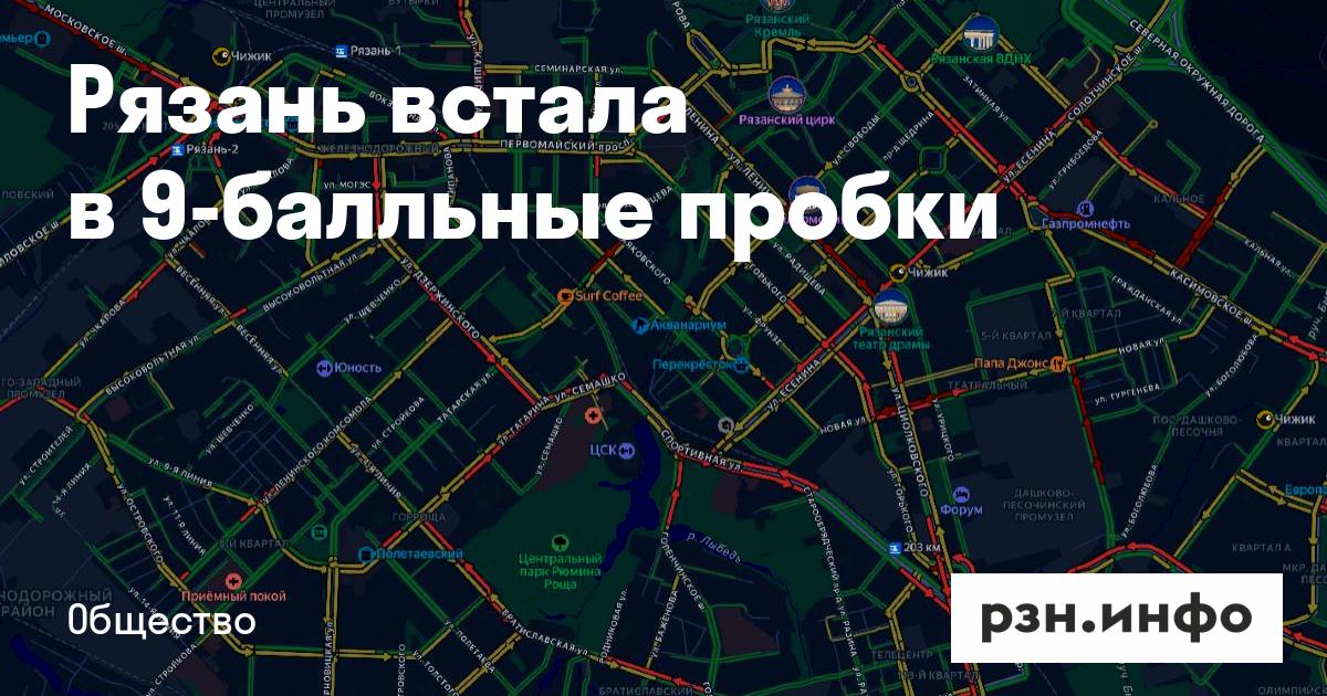 Рязань встала в 9-балльные пробки. Об этом сообщает сервис «Яндекс карты».