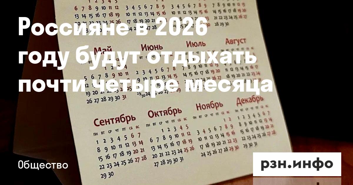 Россияне в 2026 году будут отдыхать почти четыре месяца