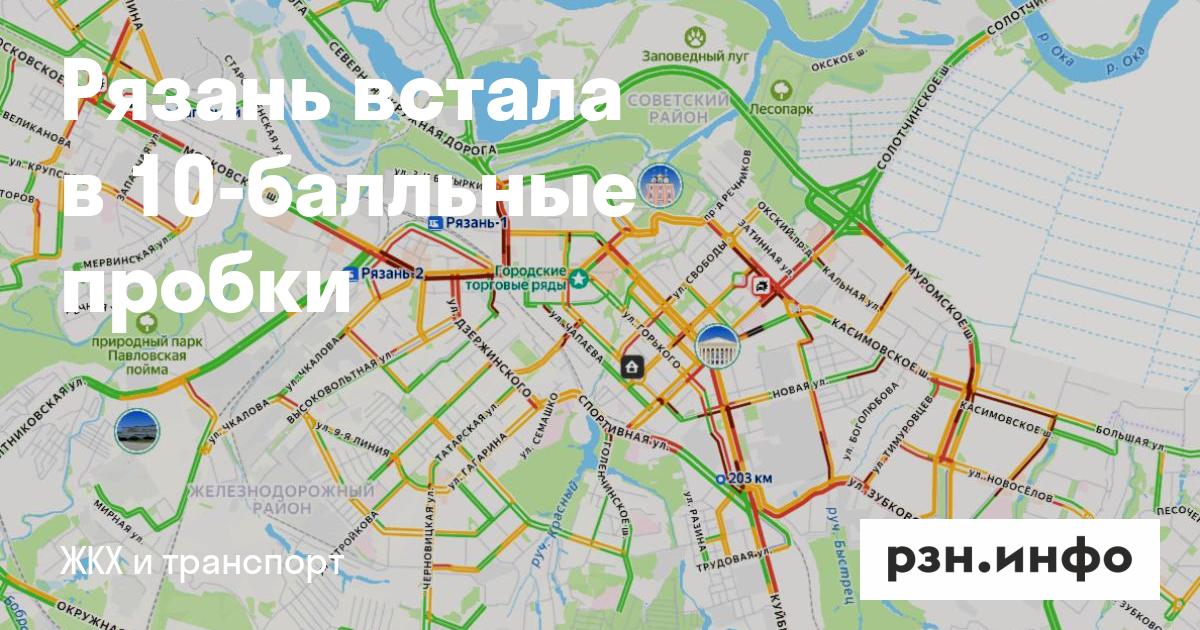 Рязань встала в 10-балльные пробки. Об этом сообщают «Яндекс карты».