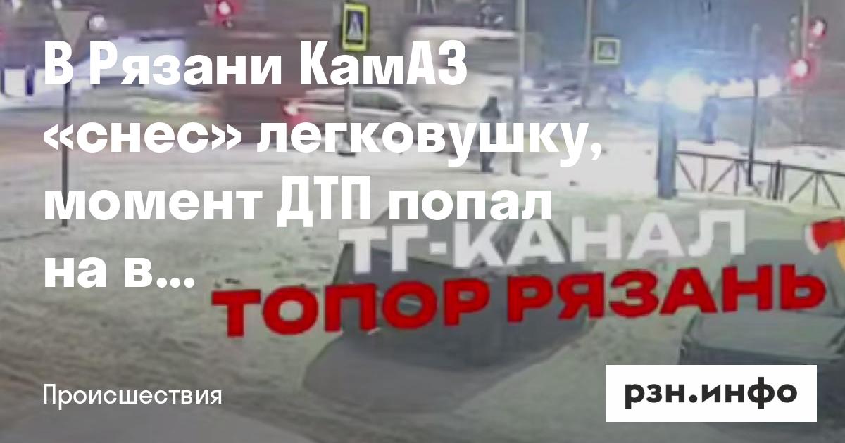 В Рязани КамАЗ «снес» легковушку, момент ДТП попал на видео. Кадры опубликованы в соцсетях.