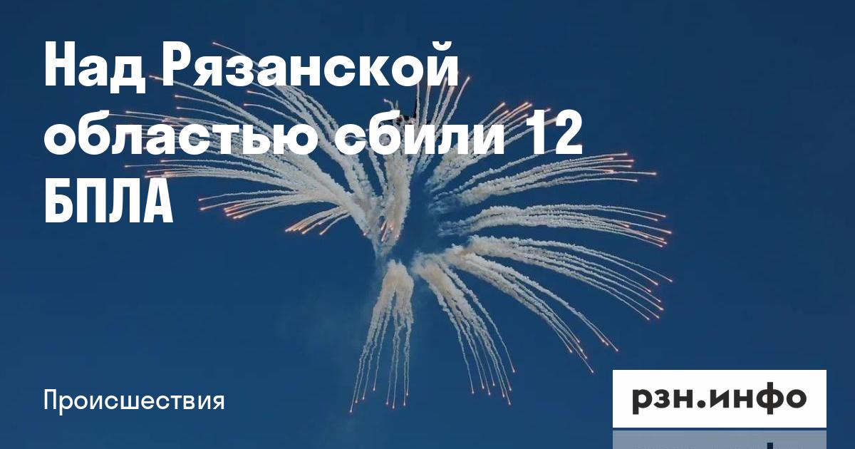 Отмечается, что дежурные средства ПВО с 7:00 до 9:00 сбили 12 беспилотников самолетного типа над Рязанской областью.