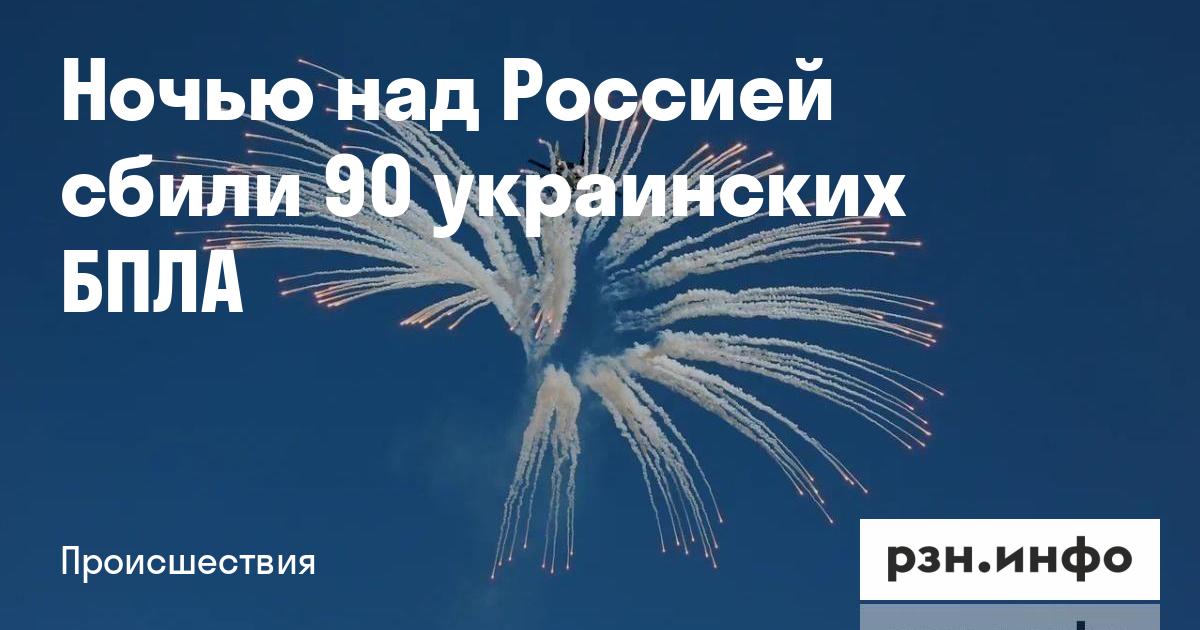 Отмечается, что в течение прошедшей ночи в период с 23.30 3 января до 7.00 4 января дежурными средствами ПВО перехвачены и уничтожены 90 украинских беспилотных летательных аппаратов самолетного типа.