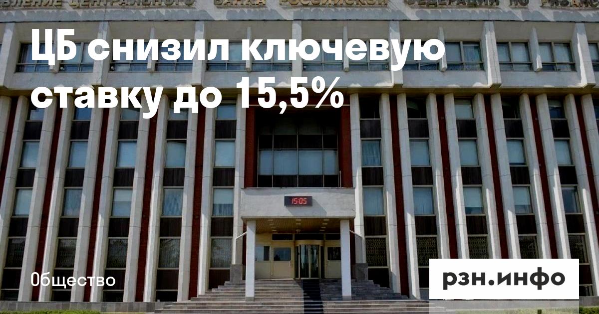 Банк России снизил ключевую ставку на 0,5 процентного пункта: до 15,5%. Это уже шестое подряд решение регулятора о смягчении денежно-кредитной политики, сообщает пресс-служба ЦБ.