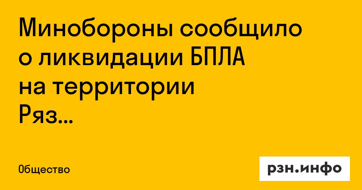 Минобороны сообщило о ликвидации БПЛА на территории Рязанской области