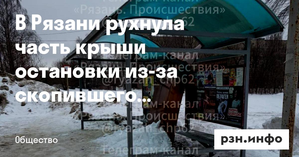 В Рязани рухнула часть крыши остановки из-за скопившегося снега. Об этом 15 февраля сообщили в соцсетях.