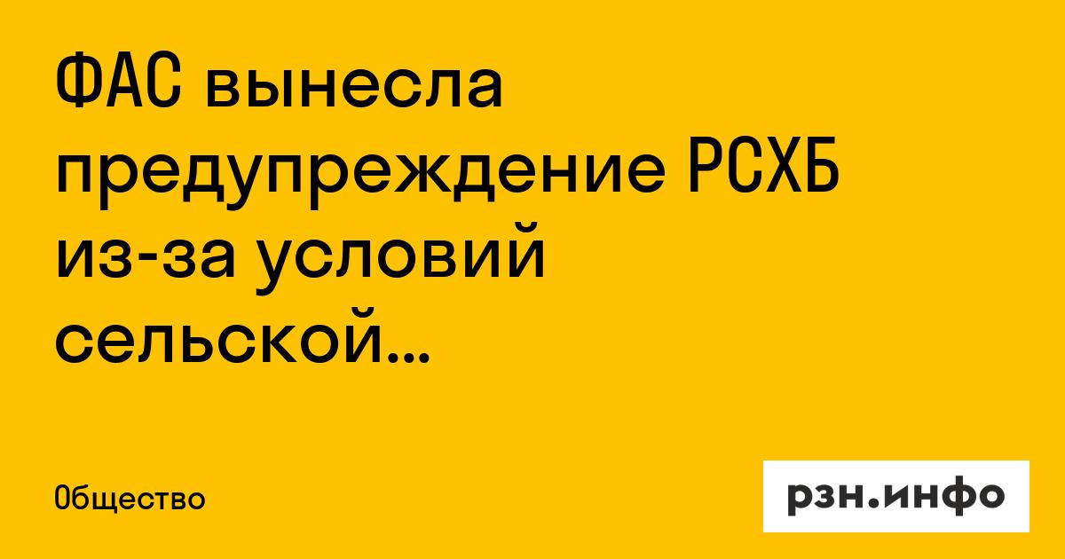 «Служба предупредила АО „Россельхозбанк“ о необходимости отменить обязательное условие о выборе подрядчика только из числа включенных в перечень рекомендуемых банком подрядных организаций, удалить информацию об этом условии с интернет-ресурса банка „Свое село“ и исключить подобную практику в будущем», — говорится в сообщении.