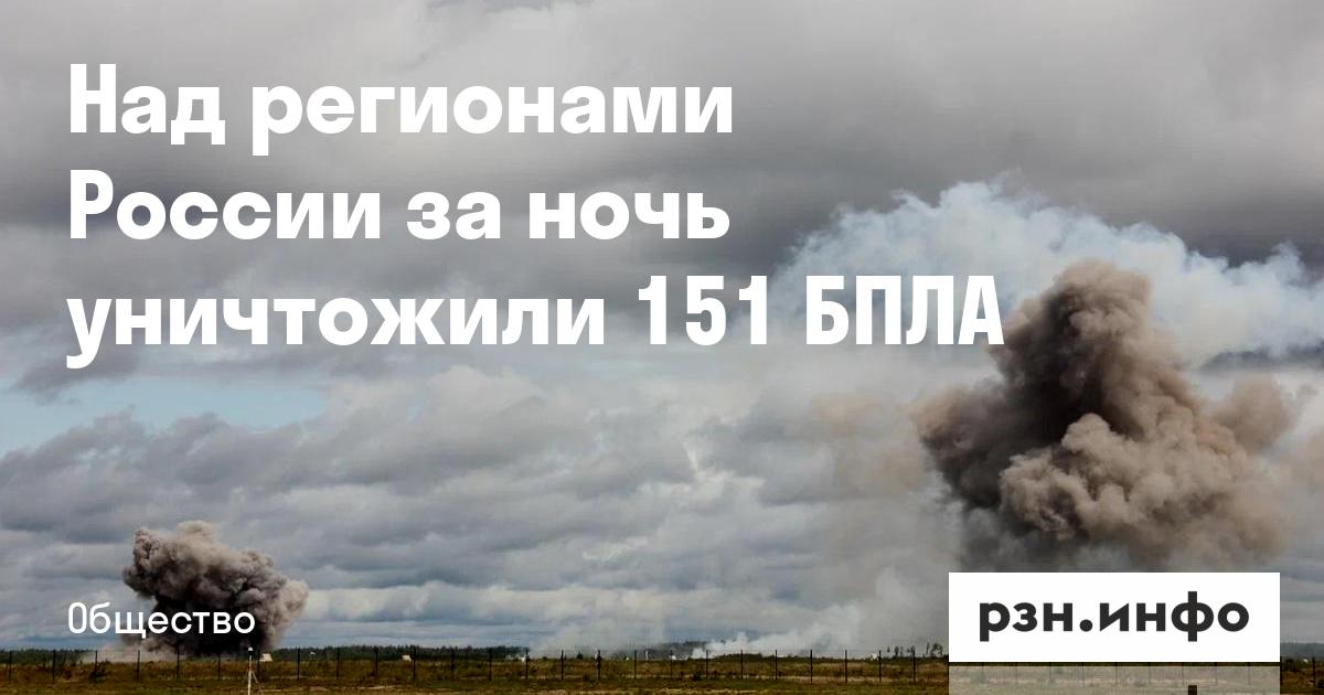 Дежурные средства ПВО за прошедшую ночь сбили 151 украинский беспилотник самолетного типа над российскими регионами. Об этом сообщили в Минобороны РФ.