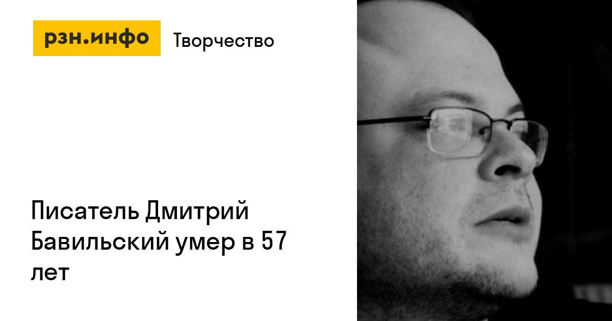 «В возрасте 57 лет в Челябинске умер Дмитрий Владимирович Бавильский, русский писатель, литературовед, литературный и музыкальный критик, журналист», — написал он в своем Telegram-канале.