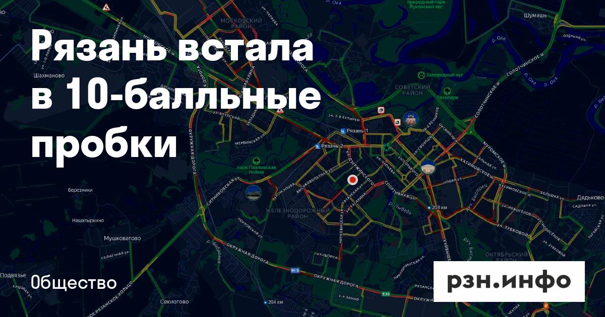 Рязань встала в 10-балльные пробки. Об этом сообщает сервис «Яндекс карты».