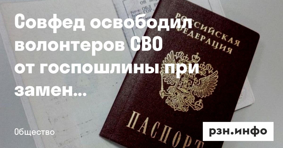 Совфед освободил волонтеров СВО от госпошлины при замене паспорта и прав
