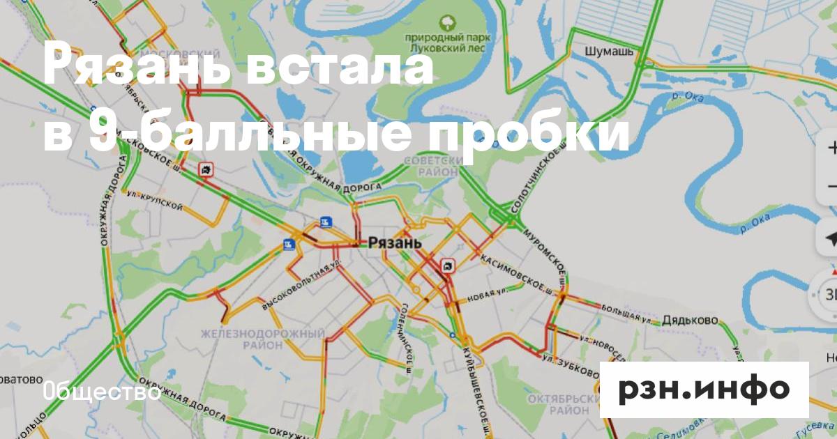 Рязань встала в 9-балльные пробки. Об этом сообщает сервис «Яндекс карты».
