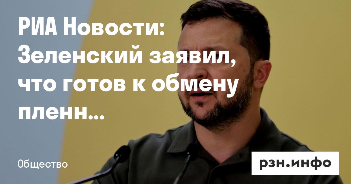 РИА Новости: Зеленский заявил, что готов к обмену пленными в ближайшее время