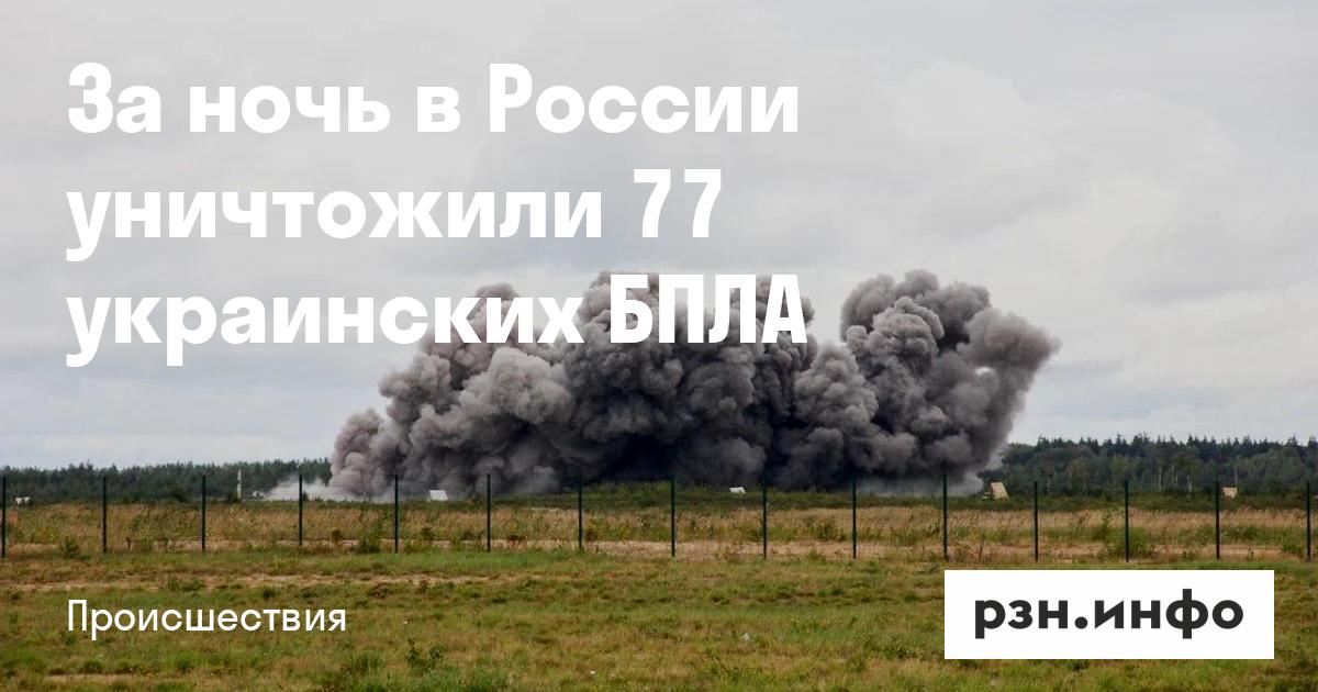 Отмечается, что в течение прошедшей ночи дежурными средствами ПВО перехвачены и уничтожены 77 украинских беспилотных летательных аппаратов самолетного типа.