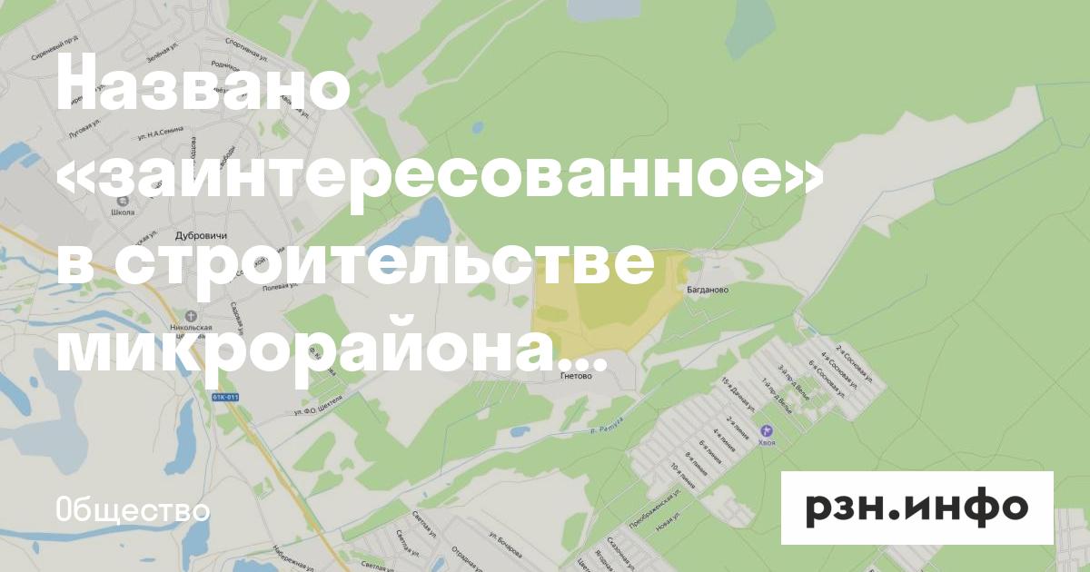 Администрация Рязанского округа начала процедуру перевода земель площадью 87 га из зоны сельхозназначения в зону комплексного развития. Участок расположен между деревнями Багданово и Гнетово, следует из постановления главархитектуры Рязанской области.