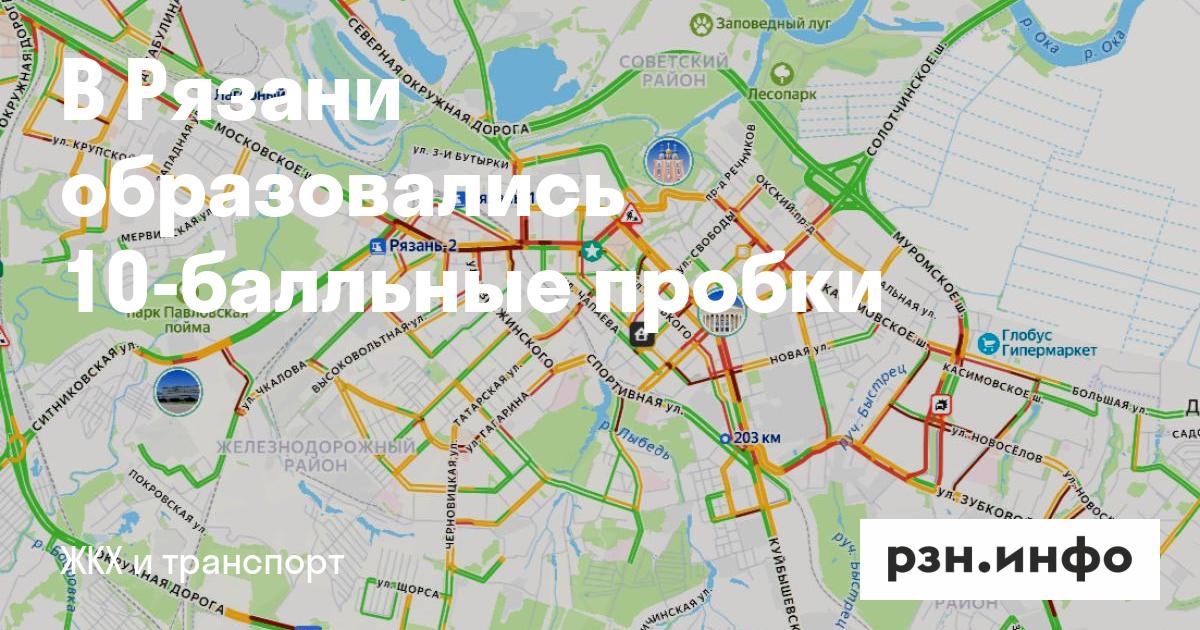 В Рязани образовались 10-балльные пробки. Об этом сообщает сервис «Яндекс карты».