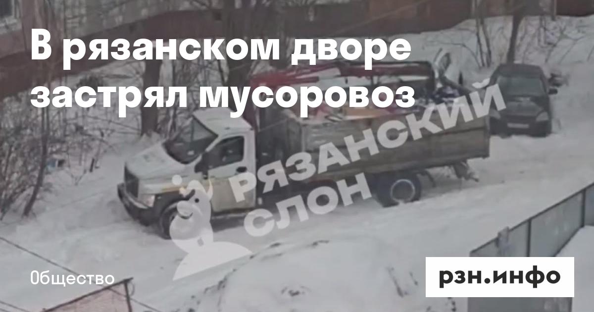 В рязанском дворе застрял мусоровоз. Об этом сообщили 24 февраля в соцсетях.