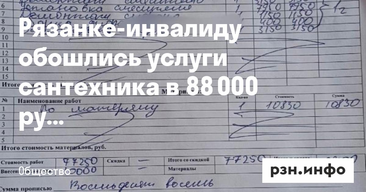 Рязанке-инвалиду обошлись услуги сантехника в 88 000 рублей