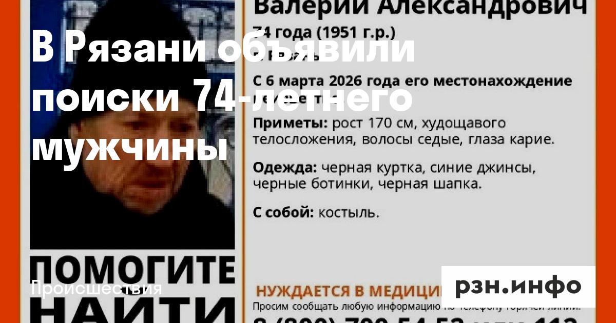 В Рязани объявили поиски 74-летнего мужчины