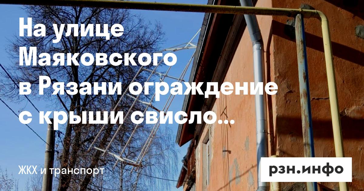 На улице Маяковского в Рязани ограждение с крыши свисло над пешеходной дорожкой. Об этом РЗН. инфо сообщили очевидцы.
