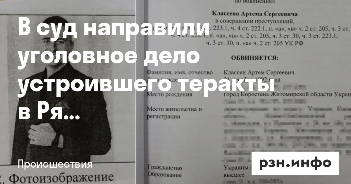 По версии следствия, Классен входил в организованную группу, состоящую также из гражданина России Руслана Сидики* и неустановленных представителей спецслужб Украины. В период с мая по ноябрь 2023 года они осуществили несколько террористических актов в Рязанской области, включая взрыв на военном объекте в Дягилево и подрыв железной дороги на перегоне Рыбное — Блокпост.