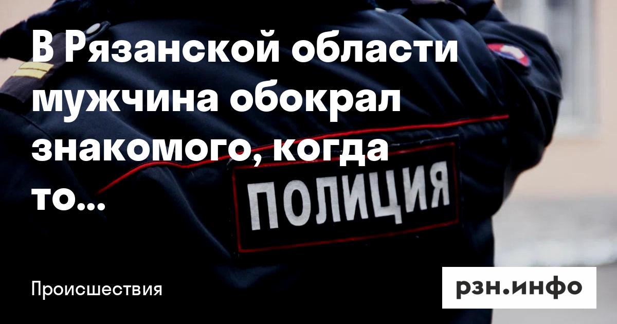 В Рязанской области мужчина обокрал знакомого, когда тот уснул